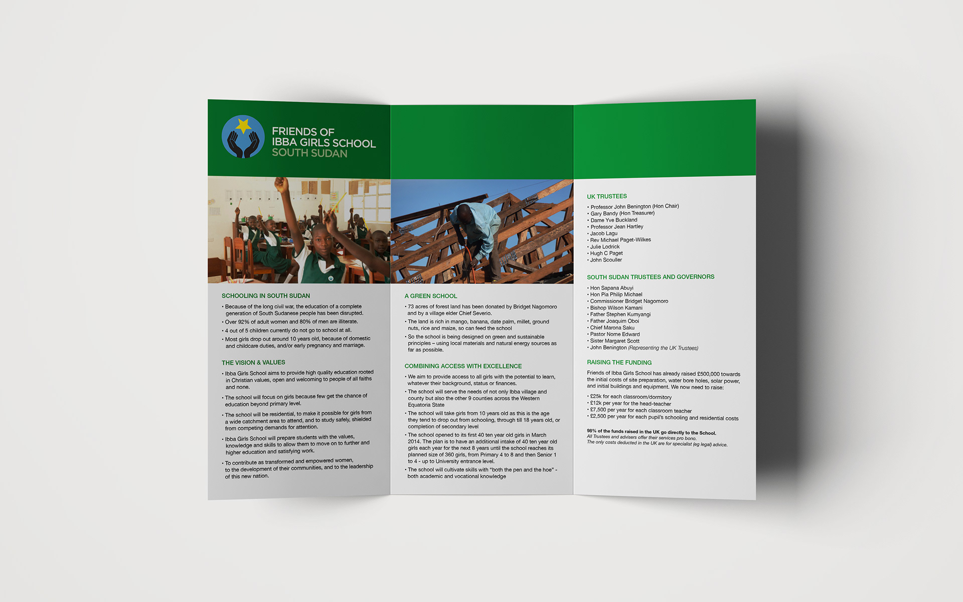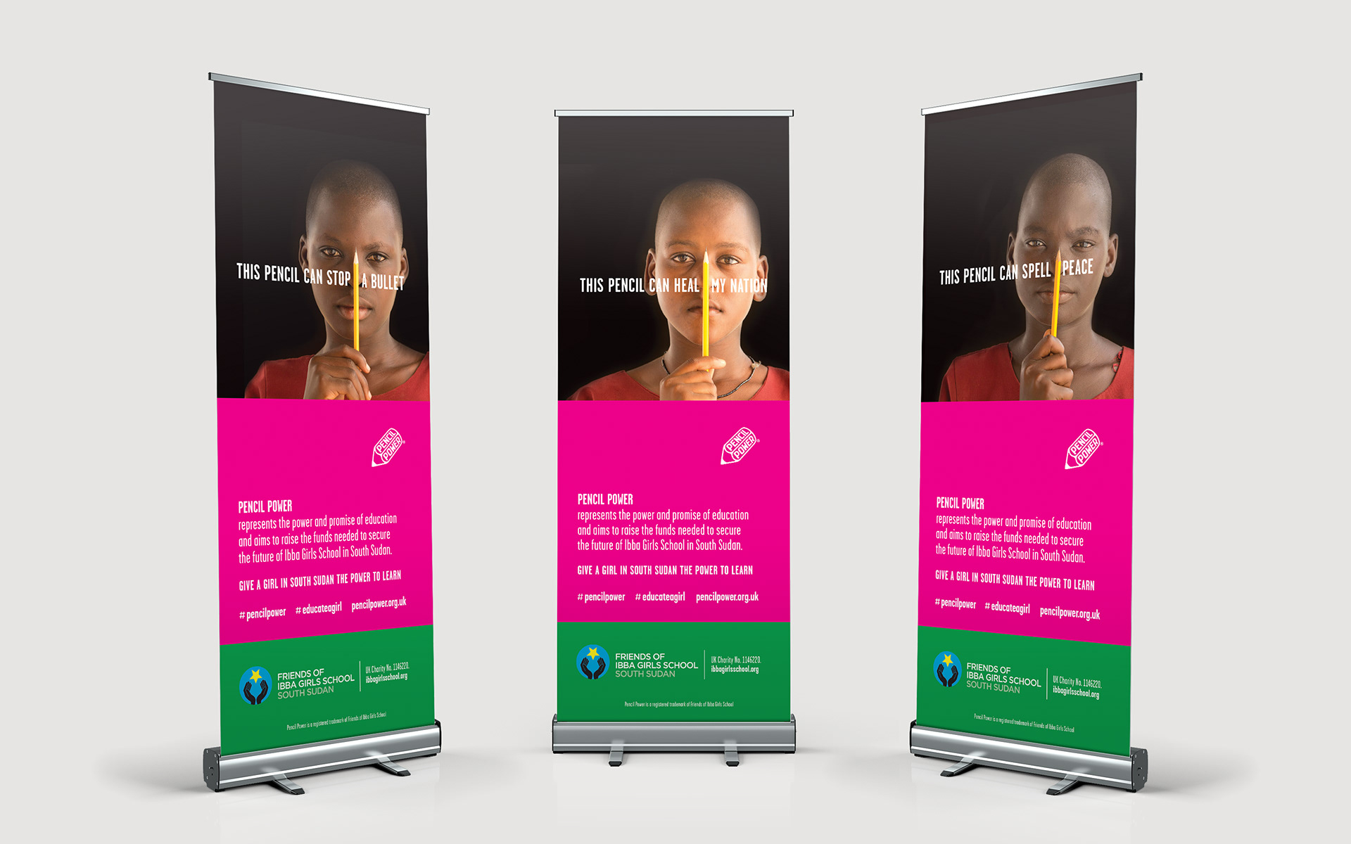 Friends of Ibba Girls School is a small UK charity helping the local community build and develop a residential school for girls aged 10 - 18 from Amadi, Gbudwi and Maridi states of South Sudan. Together with Totality I have been supporting the charity on a pro-bono basis to help with fund-raising and raising the profile of their girls' school - a school whose existence is currently wholly dependent on voluntary donations. As well as creating an identity for the school and the charity, we created a cause-related communications campaign to raise awareness and support called Pencil Power.